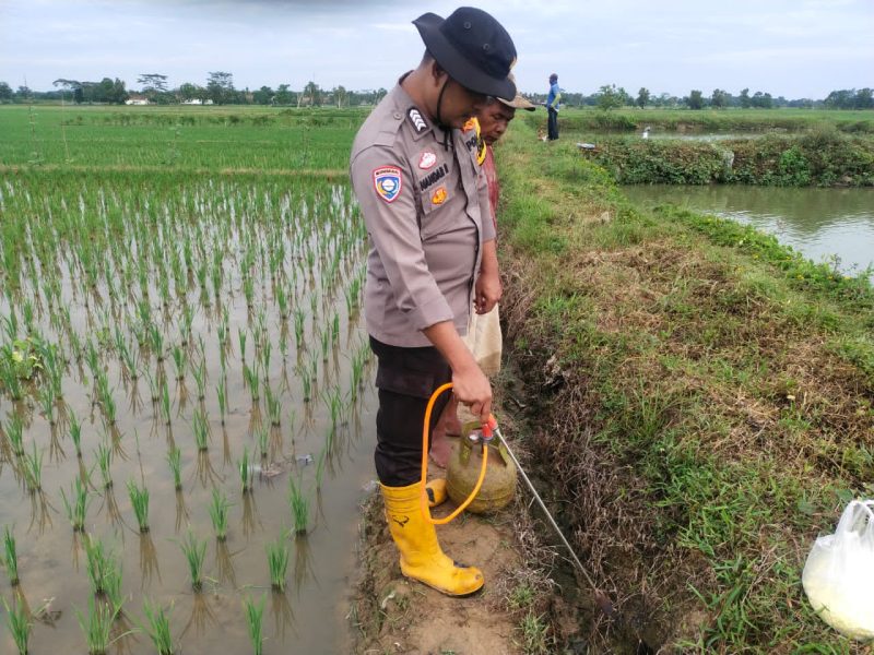 Kegiatan tersebut dilakukan bersama para petani dengan menyasar titik-titik rawan serangan hama tikus yang selama ini menjadi ancaman bagi tanaman padi. Bripka Nandar Risyanto turut membantu proses penyemprotan dan memberikan pendampingan teknis agar penanganan hama dapat dilakukan secara efektif dan aman.