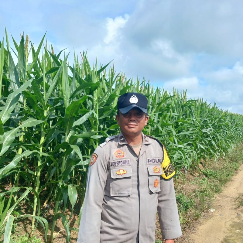 Dalam kunjungannya, Aipda L.D. Sitompul meninjau langsung kondisi tanaman jagung yang menjadi salah satu komoditas unggulan warga Desa Mulya Jaya. Monitoring ini difokuskan pada pengecekan kualitas pertumbuhan tanaman serta memastikan pola perawatan yang dilakukan petani berjalan secara maksimal agar hasil panen nantinya melimpah.