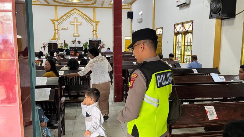 Belitang – Kepolisian Sektor Belitang I terus memperkuat fungsi pengayoman masyarakat melalui program pengamanan tempat ibadah secara rutin sebagai bagian dari pelayanan publik yang ditingkatkan di wilayah Kabupaten OKU Timur. Pada Minggu siang, jajaran personel Polsek Belitang I diterjunkan guna melaksanakan pengamanan melekat di Gereja HKBP Desa Bedilan untuk memberikan perlindungan bagi masyarakat yang melaksanakan ibadah minggu kasih. Penempatan personel di lokasi strategis bertujuan untuk meminimalisir potensi gangguan keamanan termasuk mencegah terjadinya aksi pencurian kendaraan bermotor di area parkir gereja sehingga jemaat merasa tenang saat meninggalkan kendaraannya untuk beribadah.