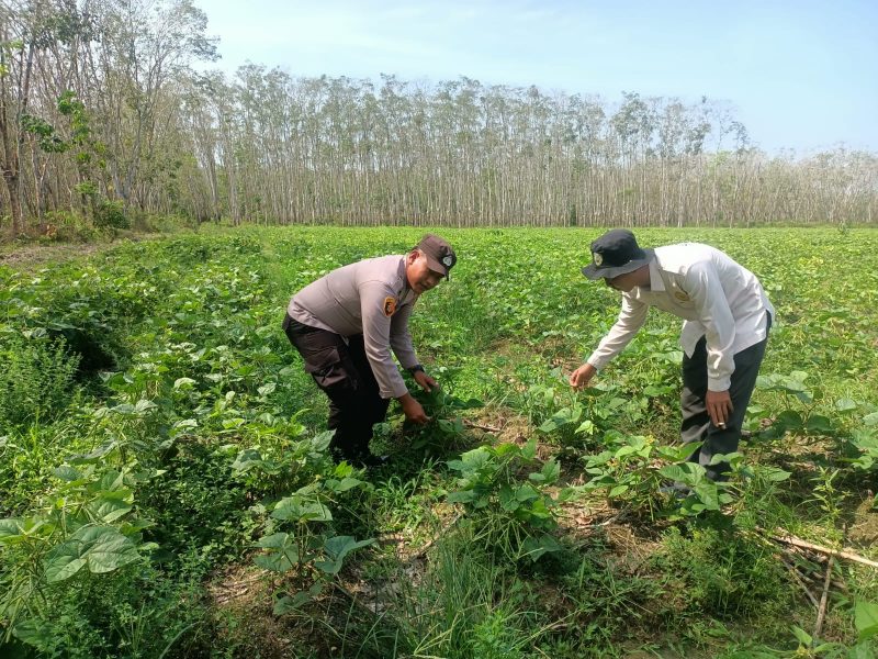 Bhabinkamtibmas Desa Karang Marga Brigpol Febri Irawan Lakukan Pendampingan dan Monitoring Lahan Pertanian Kacang Hijau