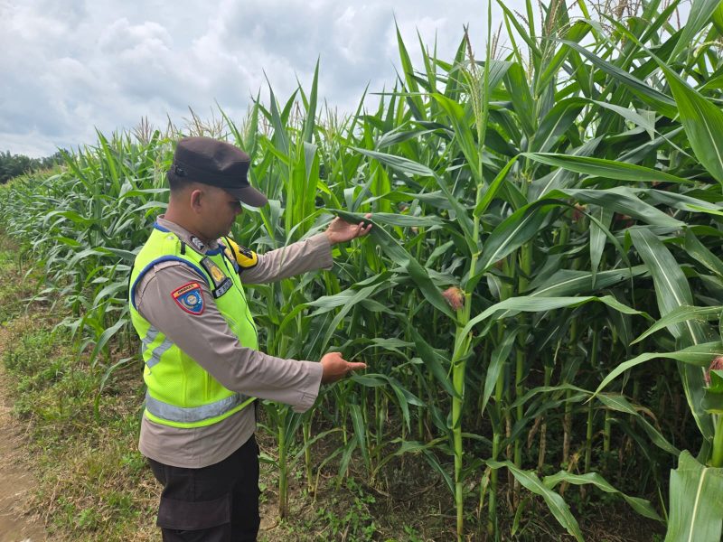 Bhabinkamtibmas Desa Sriwangi Ulu Bripka Andri Suseno Laksanakan Monitoring Lahan Jagung Dukung Ketahanan Pangan Nasional