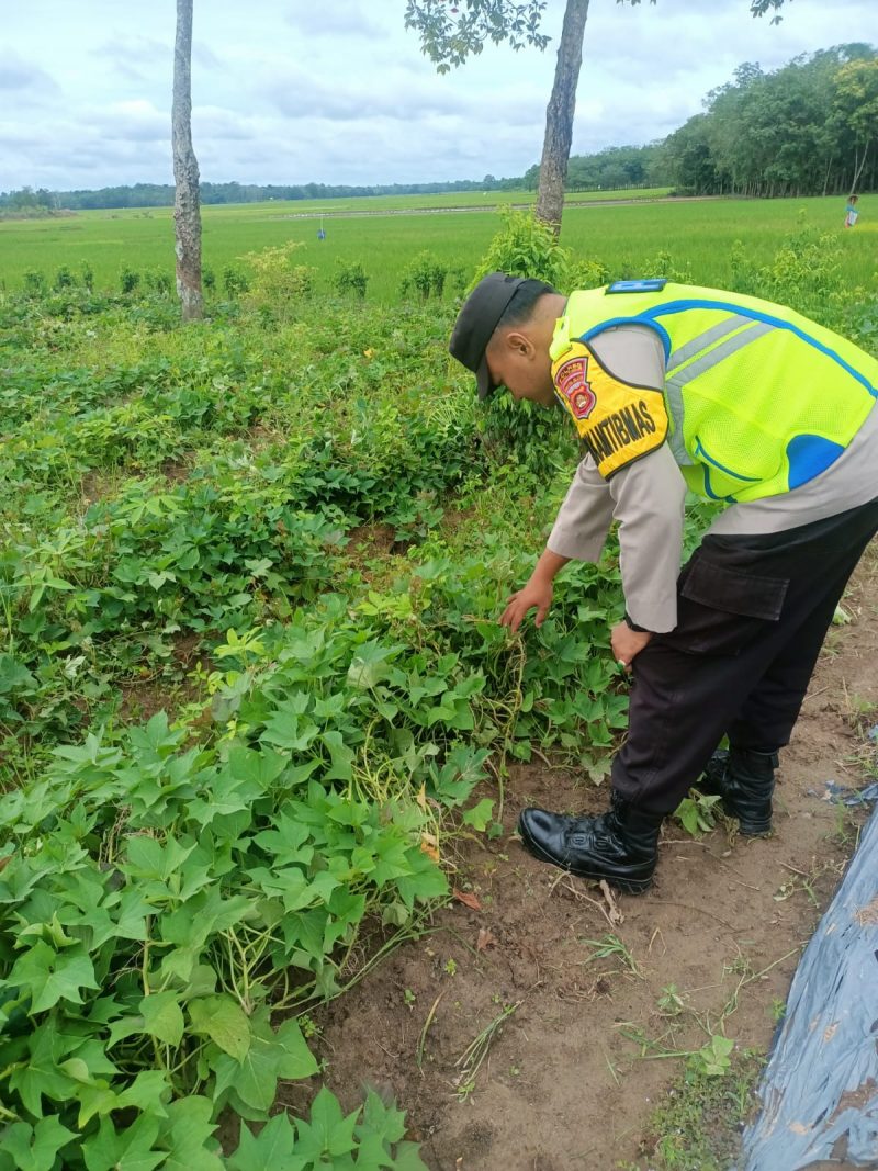* Pendampingan Petani: Brigpol Febri turun langsung ke lahan untuk berdialog dengan petani ketela, memberikan motivasi, serta mendengarkan kendala yang dihadapi di lapangan.