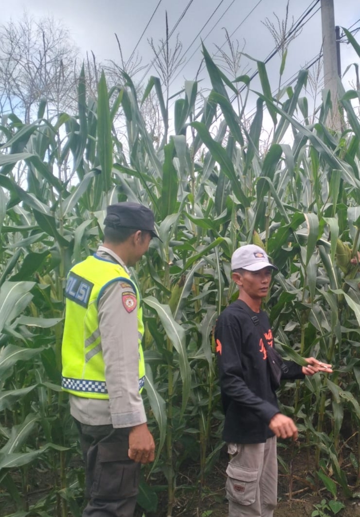 Kegiatan monitoring ini dilakukan untuk mengecek kondisi pertumbuhan tanaman, memastikan tidak adanya serangan hama, serta menilai kesiapan lahan menuju masa panen. Bripka Endrayanto juga berinteraksi langsung dengan para petani untuk mengetahui kendala yang mereka hadapi dan memberikan imbauan terkait pola perawatan tanaman agar produksi jagung tetap optimal.