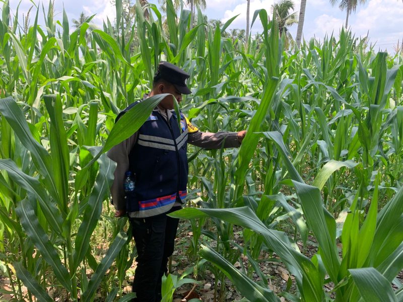 Pada kegiatan tersebut, Briptu Yoga melakukan pengecekan menyeluruh terhadap kondisi tanaman jagung milik warga, mulai dari pertumbuhan tanaman, kondisi daun, hingga potensi serangan hama. Monitoring ini bertujuan memastikan proses perawatan lahan berjalan dengan baik sehingga hasil panen dapat optimal.