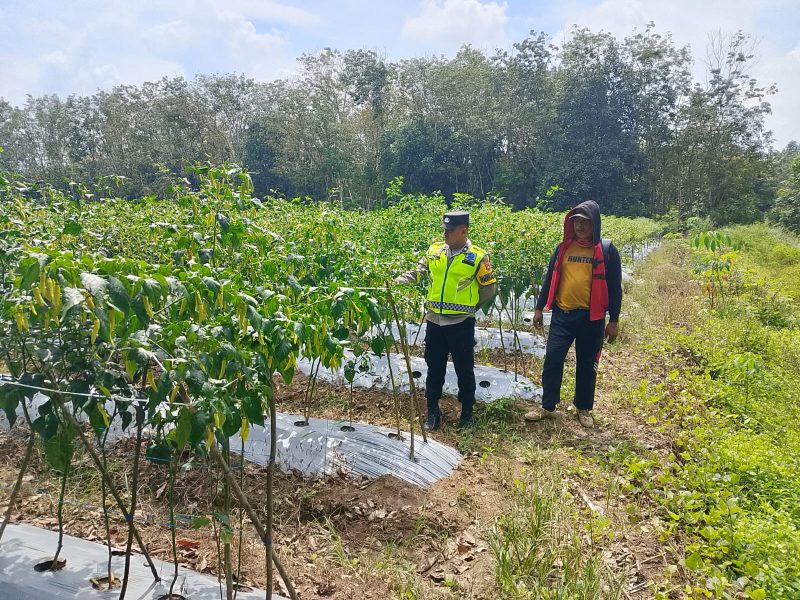 OKU Timur, 18 April 2026-Dalam rangka mendukung program ketahanan pangan serta menjaga situasi kamtibmas yang aman dan kondusif, Briptu Yoga Pratama melaksanakan kegiatan patroli dan pengamanan di lahan kebun terong milik warga yang berada di Desa Bungin Jaya.
