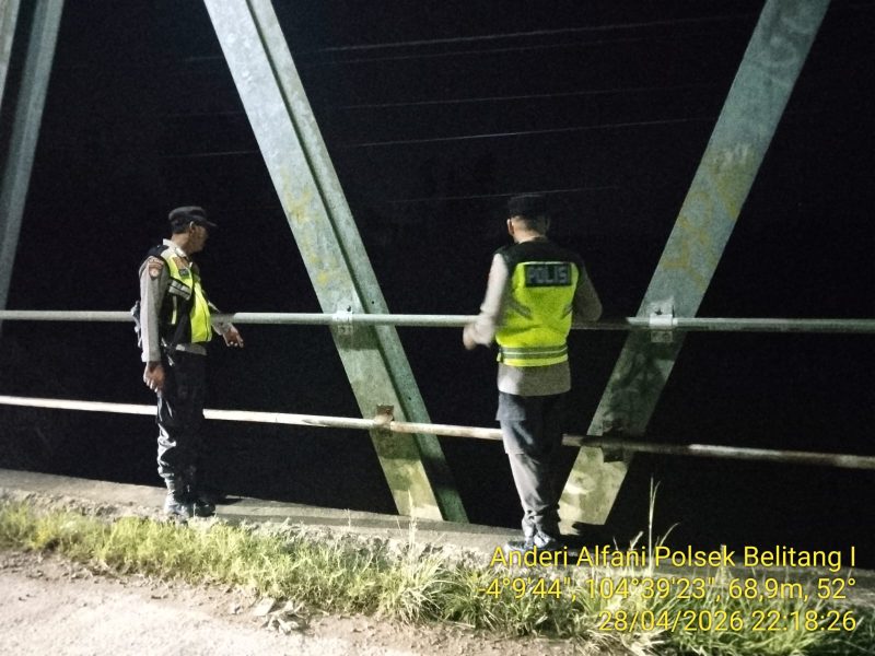 BELITANG – Di tengah waktu istirahat masyarakat, jajaran Polsek Belitang I Polres OKU Timur tetap siaga melakukan langkah-langkah mitigasi bencana alam. Pada Selasa malam (28/04/2026), personel kepolisian dikerahkan untuk melakukan pengecekan langsung terhadap kondisi debit air sungai guna memastikan keamanan wilayah dari potensi banjir.