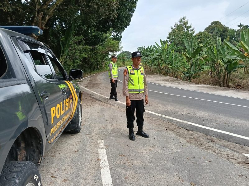 Jelang Waktu Ibadah Jumat, Empat Personel Polsek Cempaka Perketat Penyekatan dan Razia Kendaraan di Jalur Gunung Batu