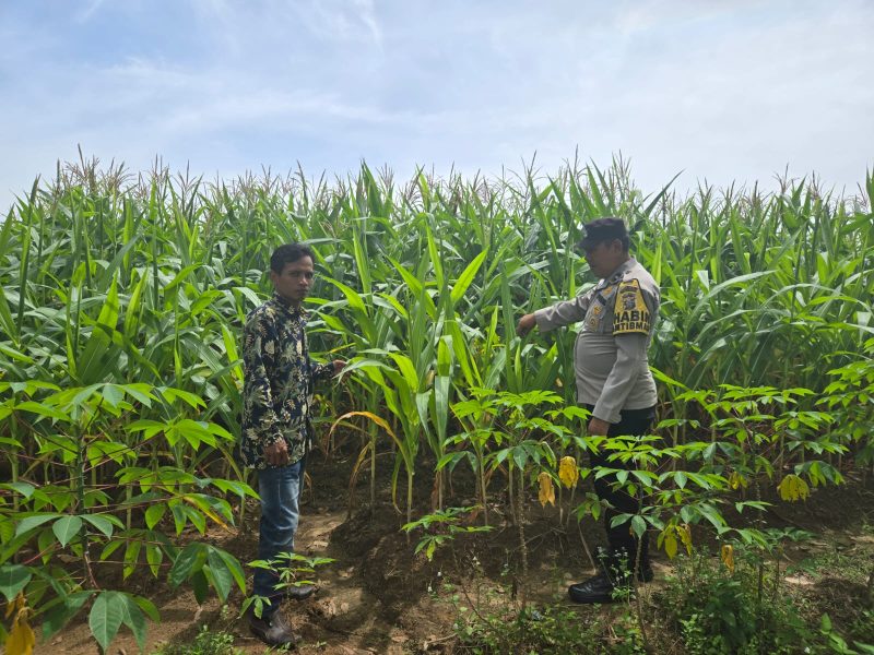 Aipda Pitra tidak hanya sekadar berkunjung, namun juga melakukan pengecekan fisik terhadap kondisi tanaman. Pendampingan ini mencakup pengawasan menyeluruh mulai dari proses penanaman, teknik perawatan, hingga kesiapan menjelang masa panen.
