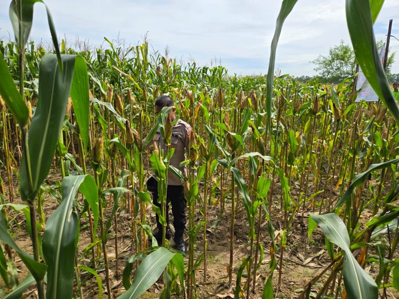 Dukung Ketahanan Pangan, Aipda LD. Sitompul Turun Langsung Monitor Lahan Jagung di Desa Mulya Jaya