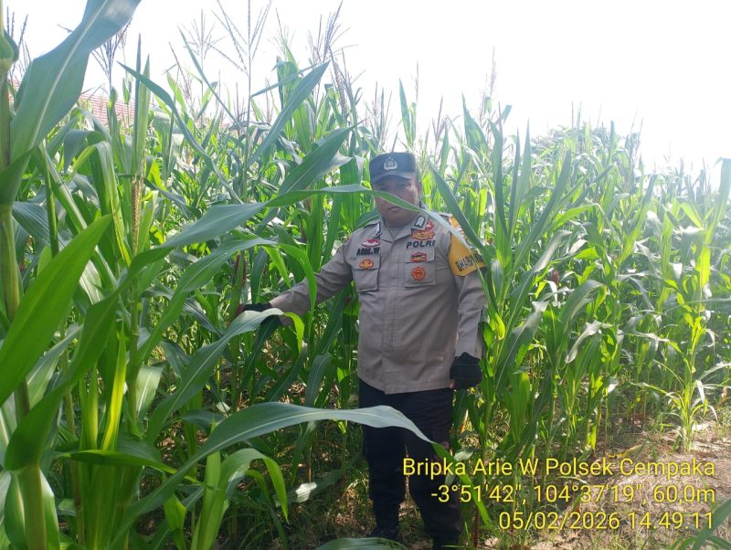 Pada hari ini, Sabtu (07/02/2026), Bhabinkamtibmas Desa Minanga Besar, Bripka Arie Wibowo, melaksanakan kegiatan sambang desa dan pengecekan lahan ketahanan pangan (jagung) di Dusun I, Desa Minanga Besar, Kecamatan Semendawai Barat, Kabupaten OKU Timur.