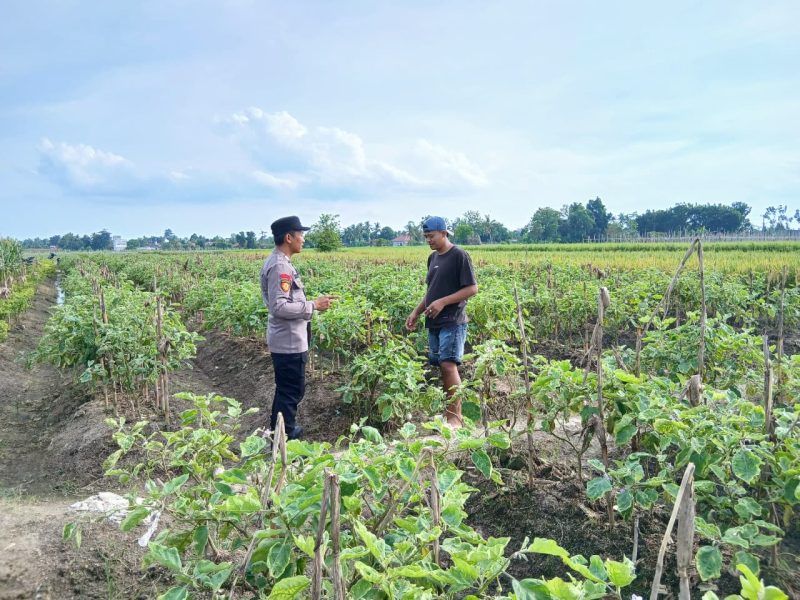 OKU TIMUR – Tak hanya menjaga keamanan pemukiman, aparat Kepolisian kini semakin aktif bersinergi dengan sektor pertanian. Brigpol M. Muslih, personel Polsek Semendawai Suku III, melaksanakan giat pendampingan dan monitoring langsung di lahan perkebunan terong milik warga Desa Suka Mulya, Kabupaten OKU Timur, Sabtu (19/4/2026).