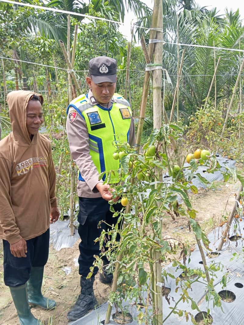 Sambangi Petani Tomat, Brigpol Febri Irawan Pastikan Masa Panen di Desa Karang Marga Aman Kondusif