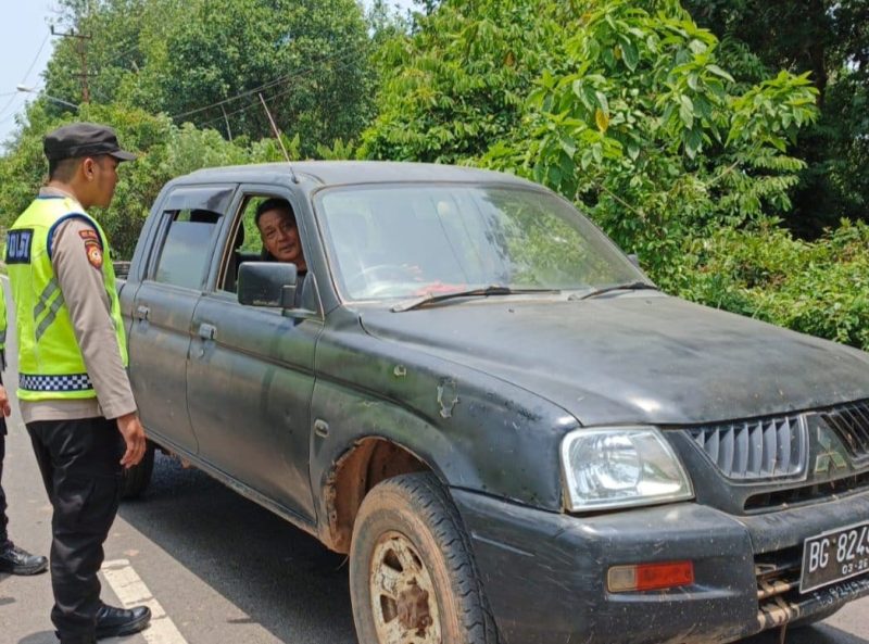 Jelang Waktu Ibadah Jumat, Empat Personel Polsek Cempaka Perketat Penyekatan dan Razia Kendaraan di Jalur Gunung Batu