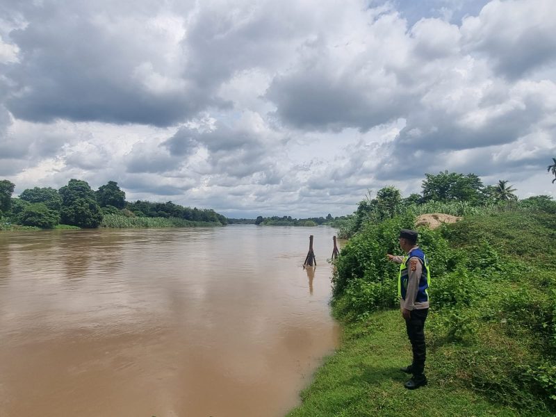 Siaga Ancaman Hidrometeorologi Awal Pekan, Empat Personel Polsek Cempaka Pantau Debit Komering dan Pasang Rambu Longsor