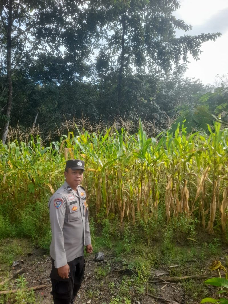 Oku Timur – Dalam upaya memperkuat kemandirian pangan di tingkat desa, Bhabinkamtibmas Desa Harapan Makmur, Aipda LD. Sitompul, melaksanakan kegiatan sambang sekaligus monitoring di lahan pertanian jagung milik warga binaan, Kamis (12/3).